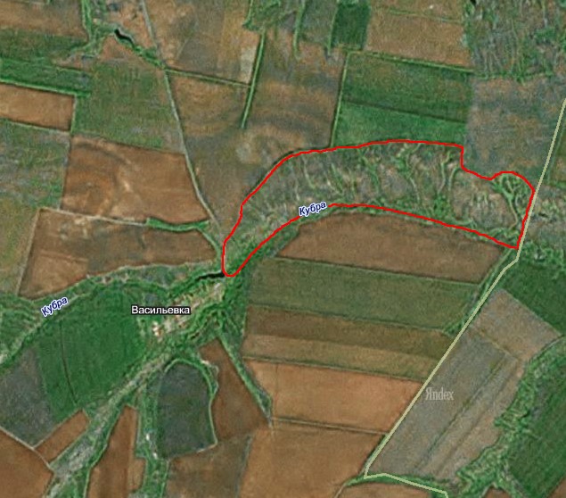 1.3. Границы Памятника природы проходят по р. Кубра и дороге между с. Васильевка и Новая Рачейка.