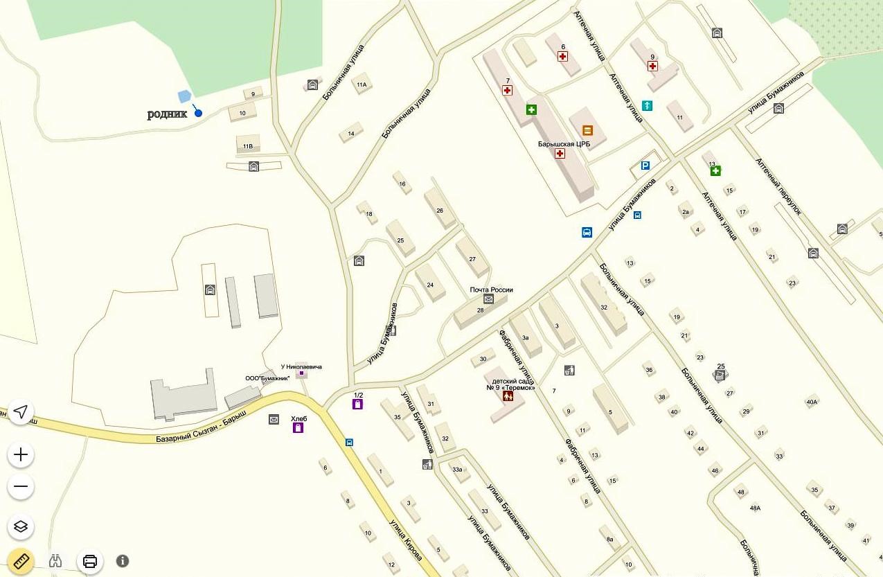 географические координаты: В 42 метрах от дома № 11 «В» по ул. Больничная в г. Барыш , Барышский район, Ульяновская область