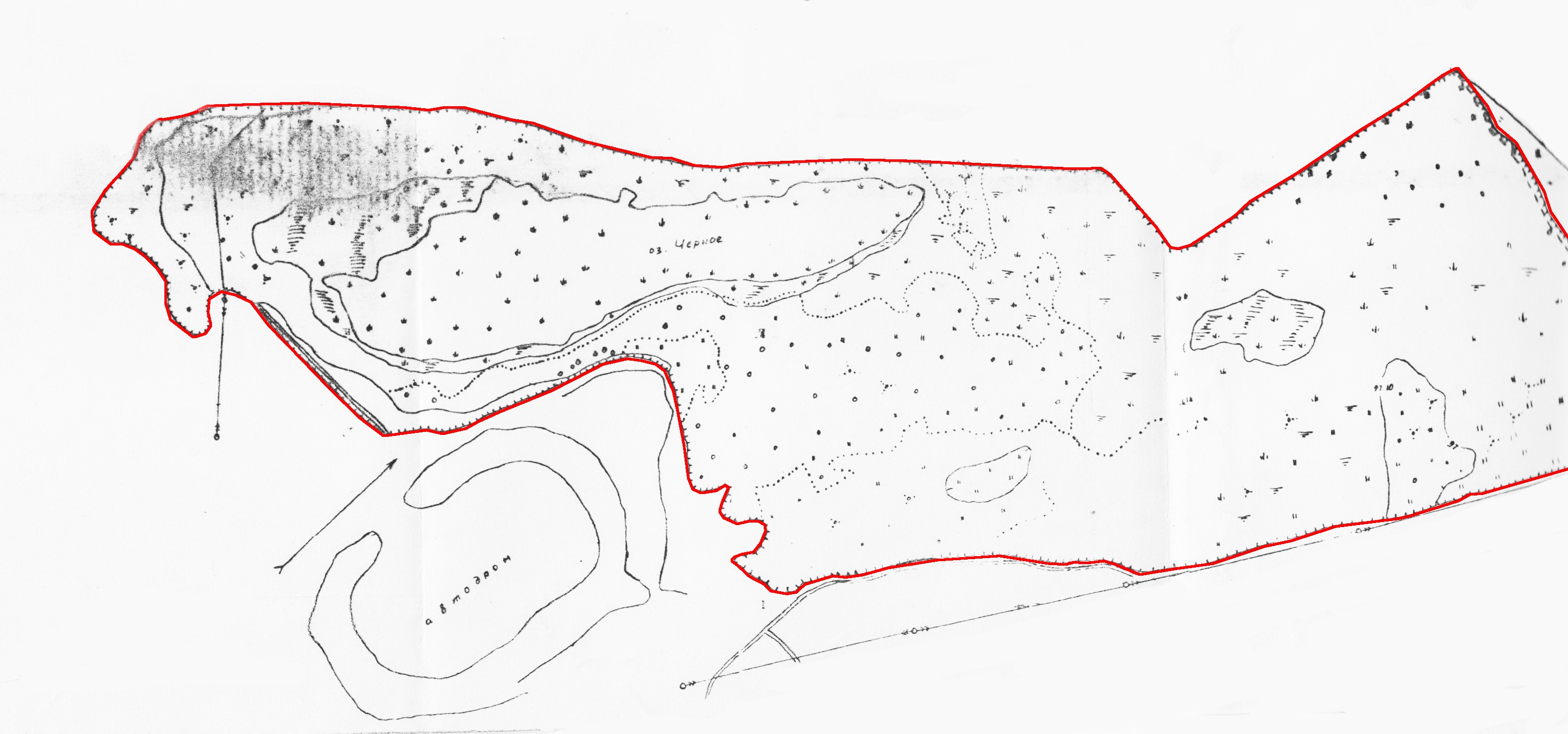 Северо-западная граница проходит по дорожной насыпи от песчаного карьера до Московского шоссе; с севера — вдоль Московского шоссе до р. Свияга; с юго-востока — по левому берегу р. Свияга до песчаного карьера, исключая земли автодрома.